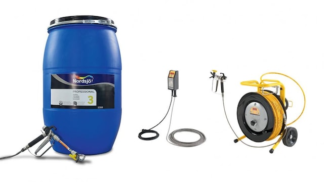 Med sprutmålning kan du göra jobbet mer än dubbelt så snabbt. Anvend alla verktyg och måla upp till 600 kvm med en och samma förpackning. En oslagbar kombination tillsammans med högtryckssprutor – 106% mer gjort på samma tid!