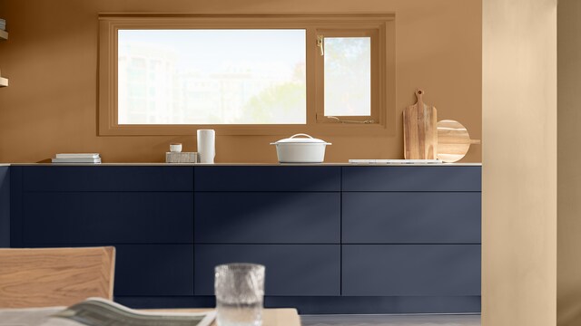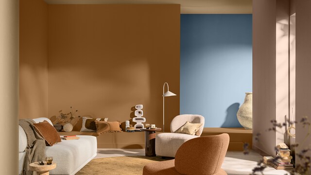 Denna kreativa palett med den luftiga himmelsblå Mellow Flow™ som central punkt, kompletteras av varma jordtoner i terrakotta, tegel och lera.